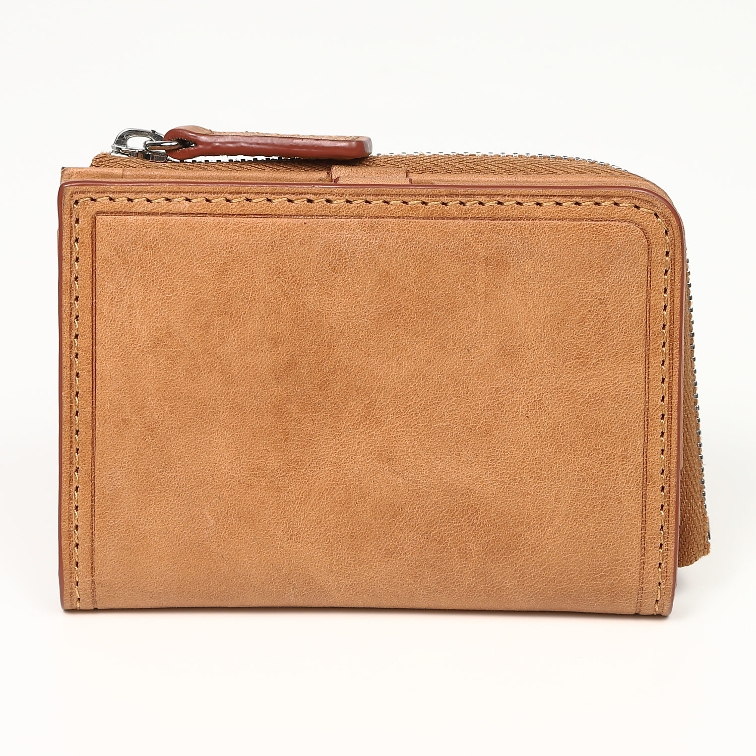 表面の白っぽさはワックスによるもので、使うほどにワックスが革の内部に浸透し、深みのある艶としっとりとした手触りが生まれていきます。